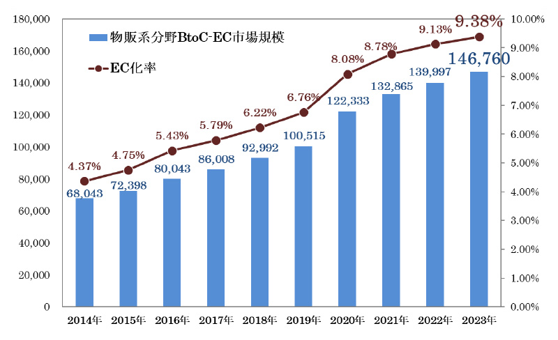 引用:経済通産省 令和5年度 電子商取引に関する市場調査 報告書