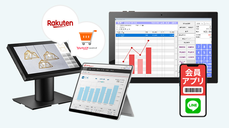 タブレットPOS・フル/セミセルフ・PC-POS等、店舗規模に応じ自由に選択できます。